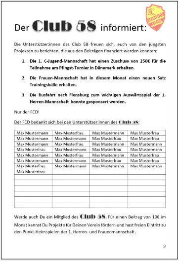 Mitglieder des Club-58 unterstützen mit einem Beitrag von 10€ im Monat den Verein. Dafür gibt es freien Eintritt zu allen Punkt-Heimspielen der 1. Herrenmannschaft.